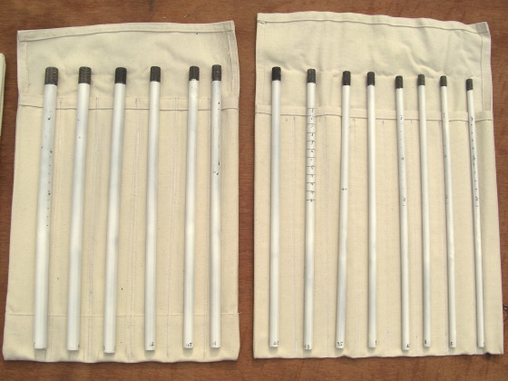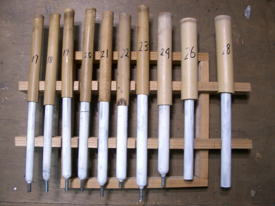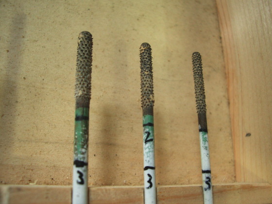 こちらは、大物竿用の大〜特大の口ヤスリです。手元にボルトが付いているものは、シャフトにねじ込んで中浚いヤスリ兼用で使用しています。