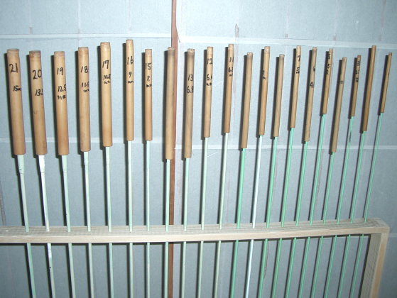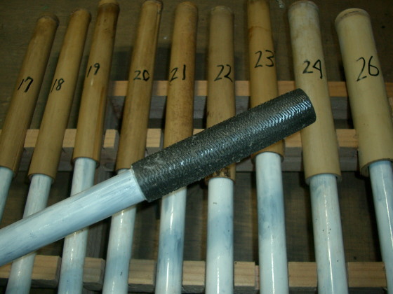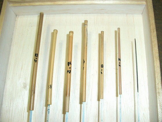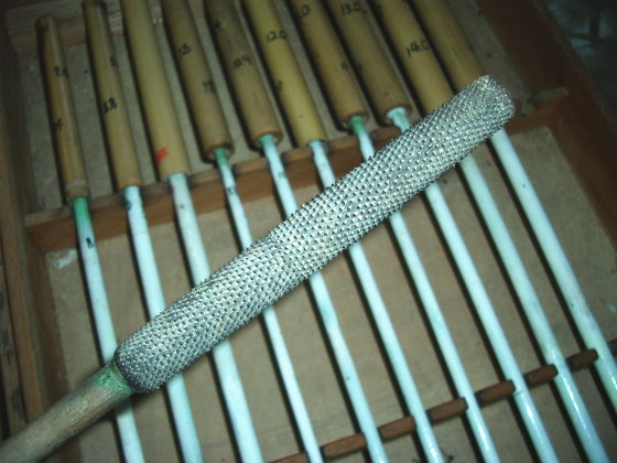 口ヤスリの目立ては、「イバラ目」と呼ばれます、今日では数少なくなったヤスリ職人さんによる手打ちの貴重品で、本数を揃えますと高価になるものですが、当工房で主に扱っております硬い高野竹や矢竹の古竹でも大変良く削れて重宝しています。